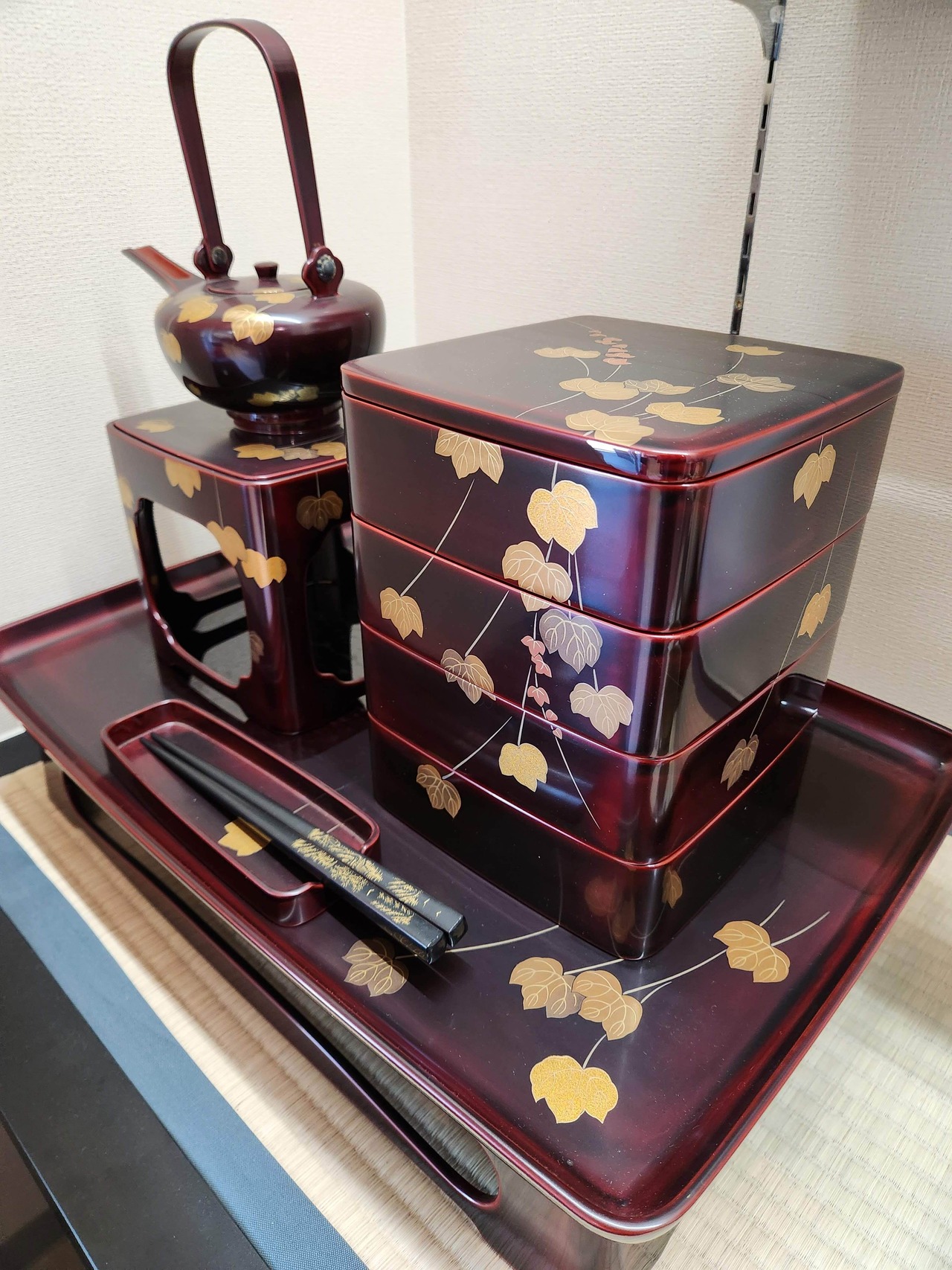 輪島塗作家 木谷信夫作の 屠蘇器の七点セットです。